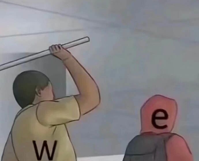 W hit E
